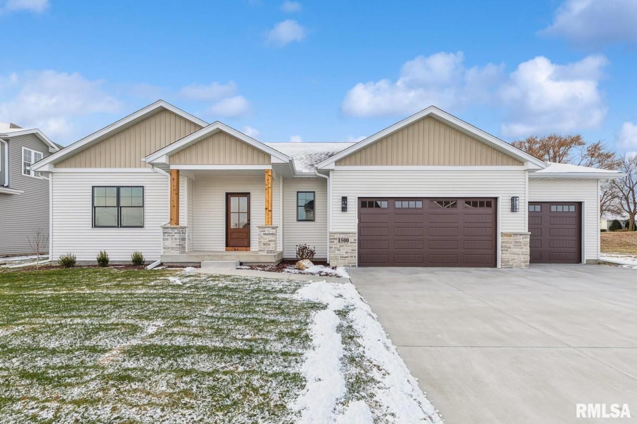 New Construction. Here's your brand new, 3 bedroom, ranch style home with the 3 car attached garage of your dreams. The 3rd car bay is extra deep. Open layout with a spacious feel on the main level and 9' walls in the basement for more of the open space vibe. Beautiful white oak kitchen cabinetry with solid surface counter tops. All locally built by and custom made by Finishing Touch Custom Wood Works in Park View, Ia. Hardwood Flooring throughout most of the main level with carpet in all the right spots. The locker area near the garage entrance has bench seat and is perfect for added storage or just a spot for kicking off your shoes and dropping book bags, lap tops, chargers, etc. on your way into the house. Don't forget to check out the reclaimed white oak mantel above the gas log fireplace showcased in the great room. The basement has been roughed in for a future 3rd downstairs bathroom and could be easily finished for plenty of added living space and extra bedrooms if desired. This is your must see home if you are looking in the Eldridge, Iowa area?